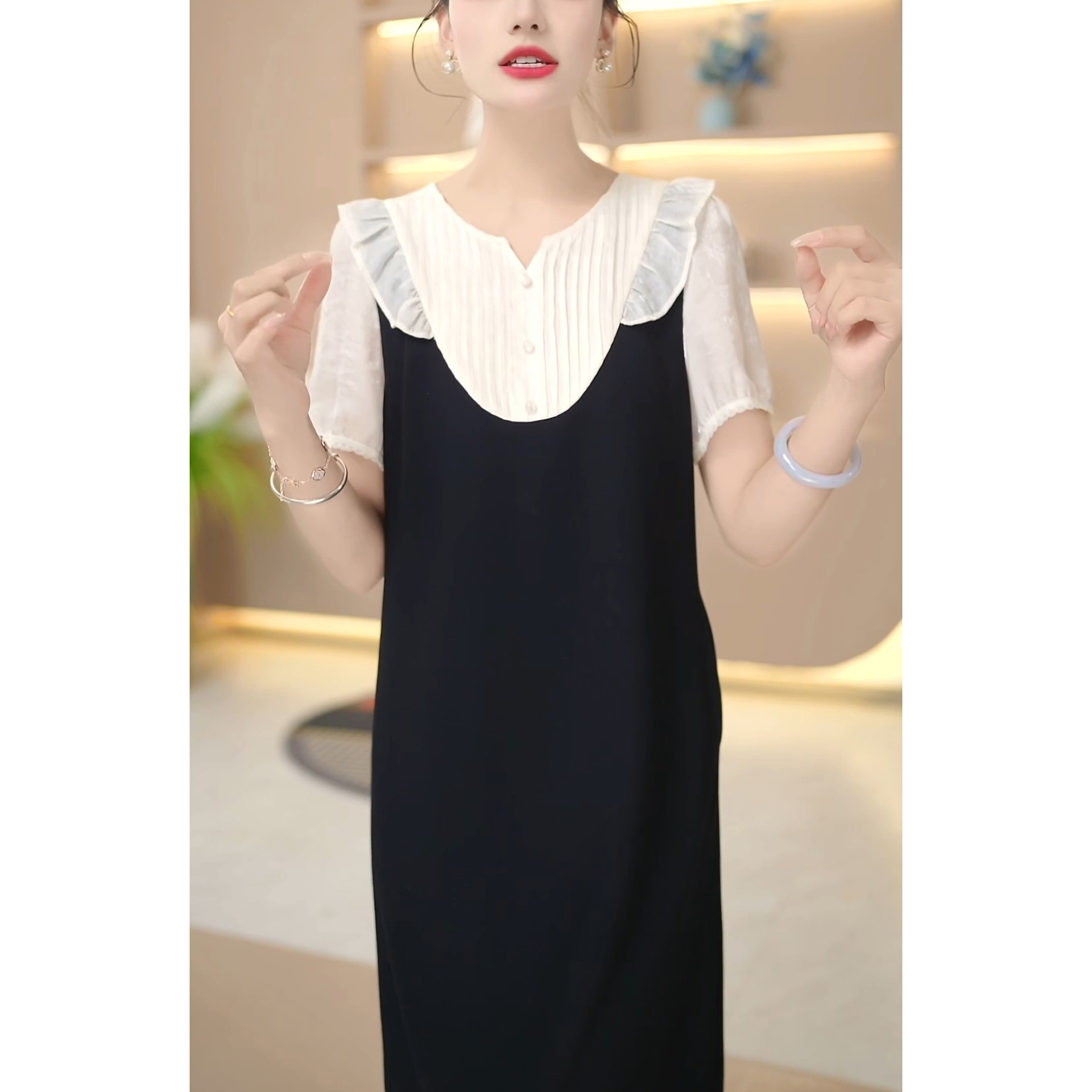 高级感显瘦气质拼接千金小黑裙 连衣裙夏季 法式 赫本风黑色背带无袖