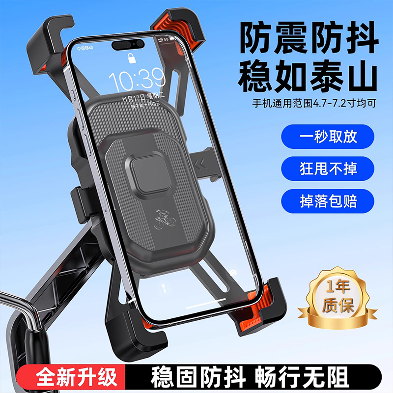 2025新款 外卖骑手 电动车手机支架防震防抖电瓶自行车导航后视镜款