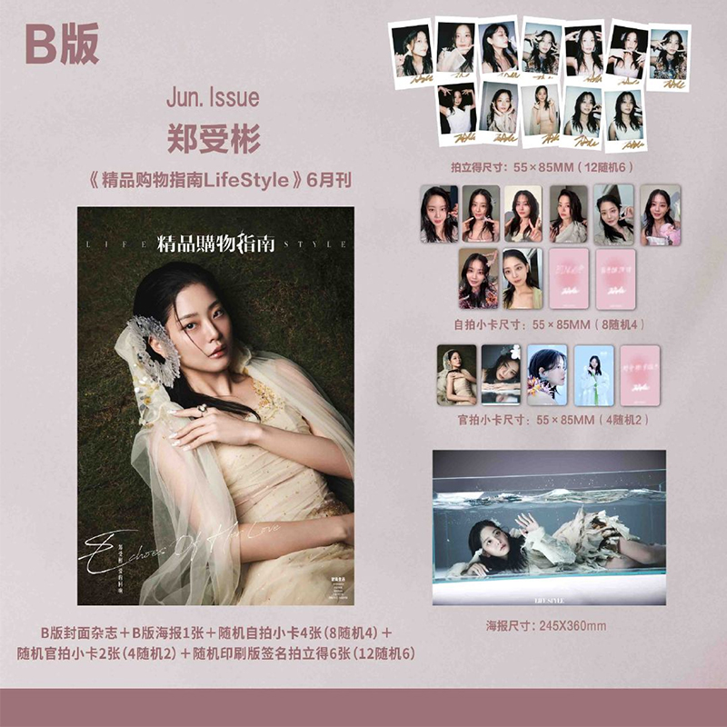 1张隐藏随机拍立得 郑秀彬 12张小卡 12张拍立得 2张海报 郑受彬官方C版 B封面 2025年六月 精品购物指南杂志 1张随机隐藏卡 6月