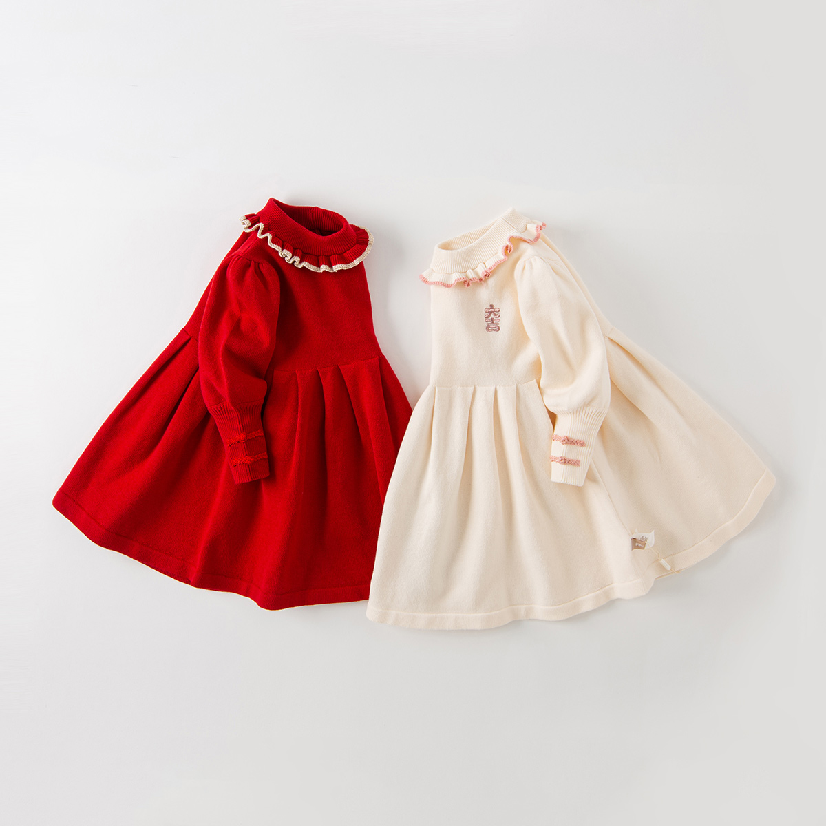 戴维贝拉女童连衣裙秋装 女孩宝宝新年洋气公主裙 毛衣裙子童装