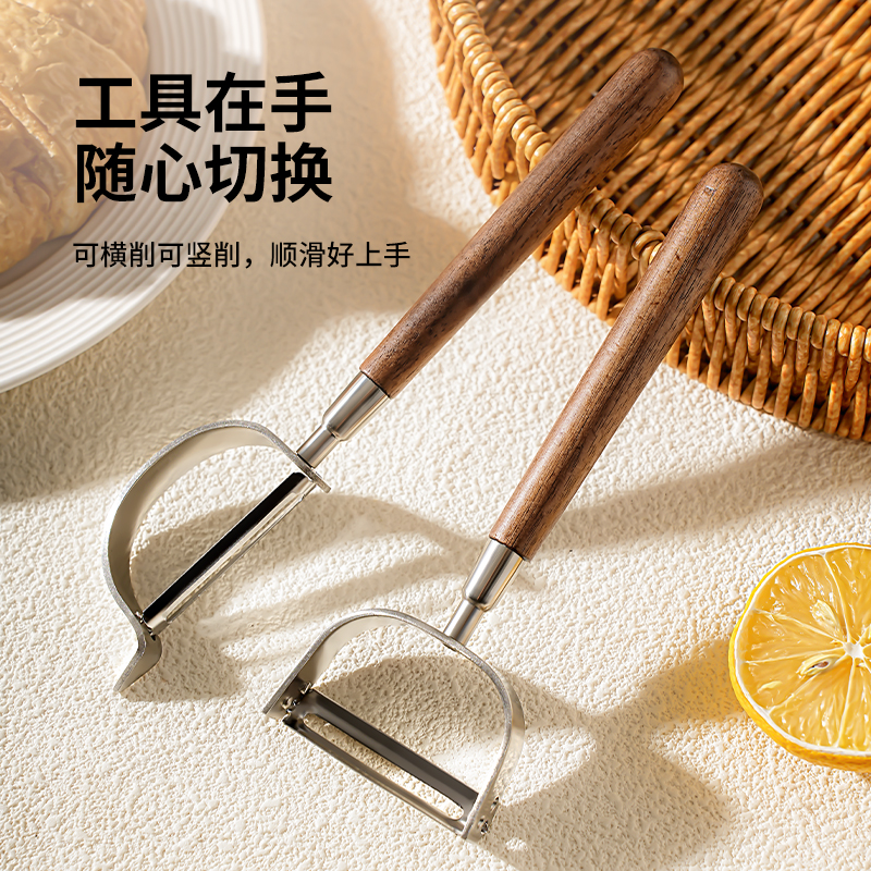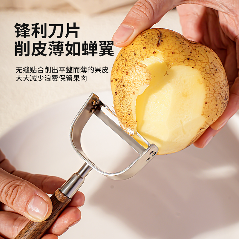 胡桃木水果削皮刀厨房专用304不锈钢土豆刮皮刀削苹果皮神器瓜刨