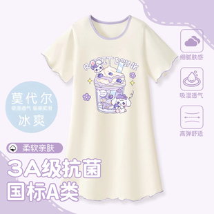 可爱狗狗睡裙女夏短袖 莫代尔冰丝宽松减龄少女风可外穿睡衣家居服