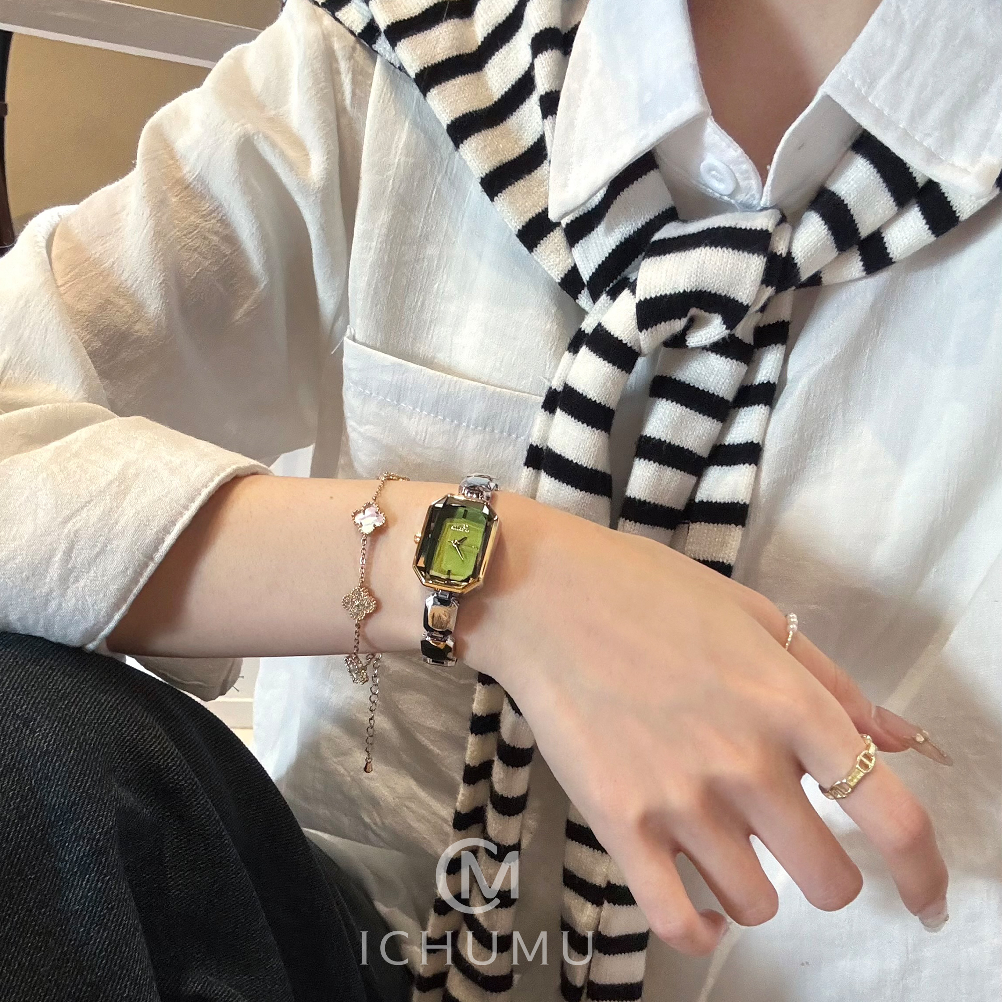 ICHUMU手表女轻奢小绿表时尚 高级感方形小方表女士上班族2025新款