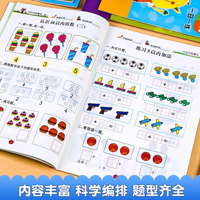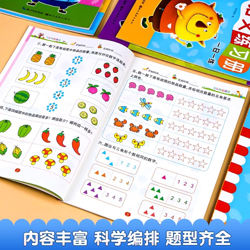100以内加减法练习册一日一练启蒙训练 幼儿园大班学前班教材用书天天练 计算趣味算术题本 幼小衔接数学5 认图形看图列式