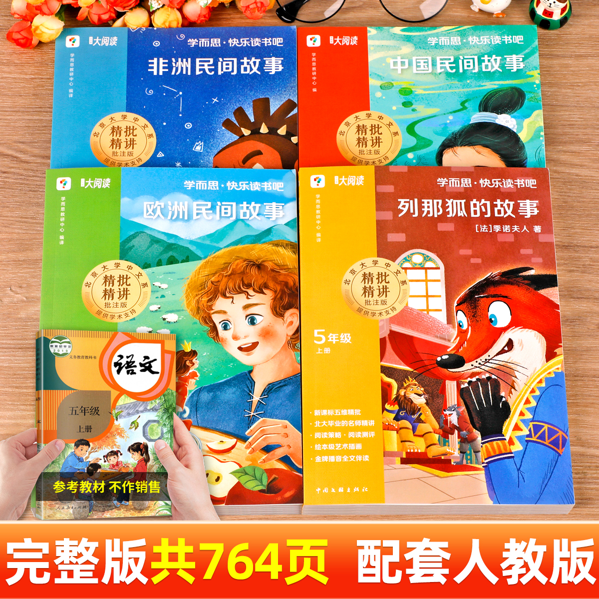 小学生语文人教版 故事全套老师推荐 学而思五年级上册必读课外书快乐读书吧中国民间故事非洲欧洲列那狐 阅读书籍 2025新版