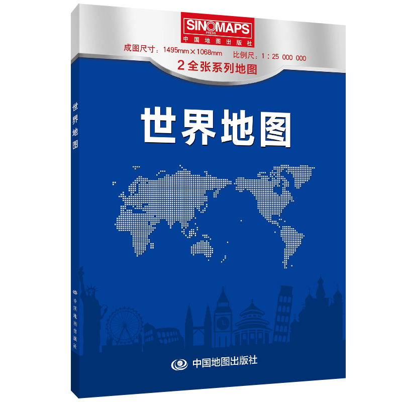 1.495 折叠版 1.068米 地理学习 易收纳 世界地图 办公出行 盒装