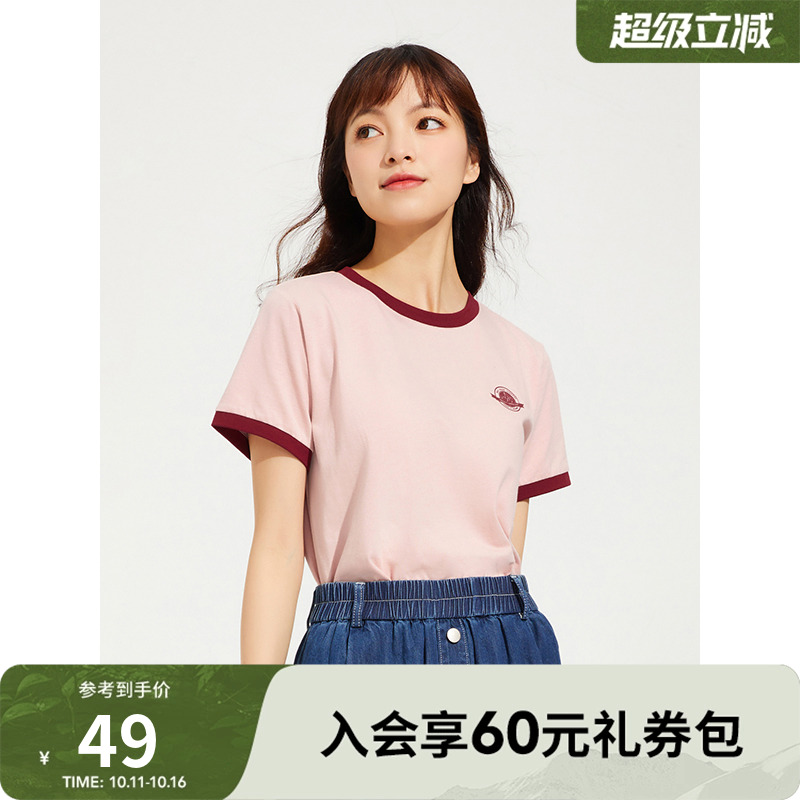 夏装 上衣撞色印花短袖 女装 减龄修身 女t恤夏 修身 热风2025年新款