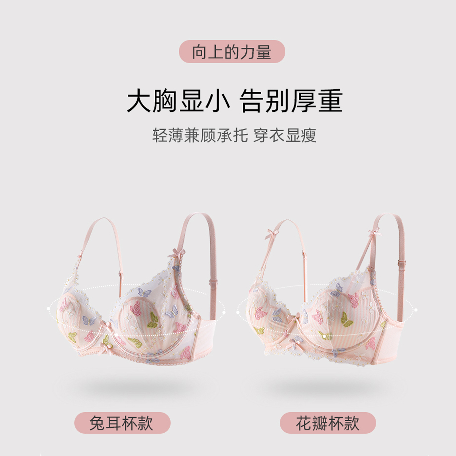 六只兔子小蝴蝶内衣女大胸显小轻薄显瘦性感蕾丝收副乳文胸罩套装