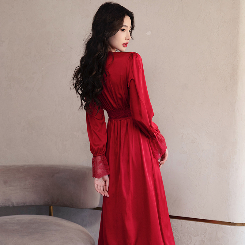 晨袍女新娘春秋款 伴娘礼服长袍 婚礼红色高级感结婚新婚家居服长款