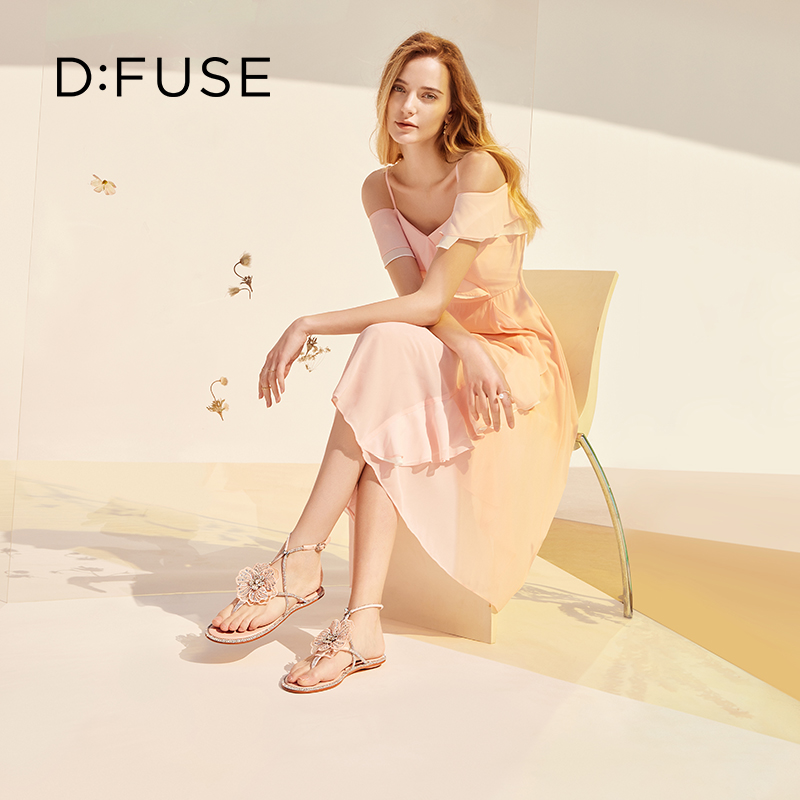 DF32115338 刺绣水晶花平底夹趾仙女凉鞋 DFuse迪芙斯夏季 新款