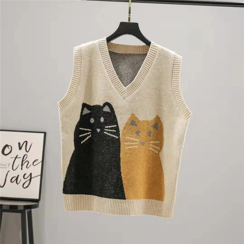 复古洋气提花针织开衫 马甲女秋冬圆领慵懒风宽松休闲叠穿坎肩背心