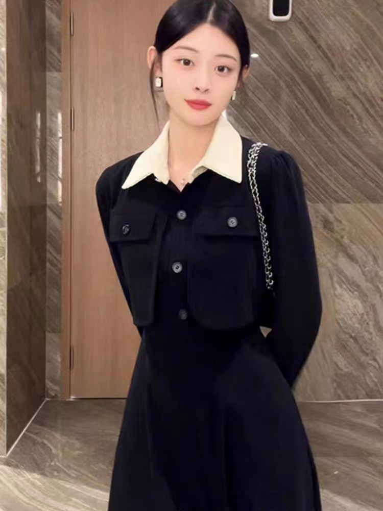 连衣裙女 赫本风黑色裙子气质小黑裙长袖 晚白2025秋冬爆款 轻奢法式