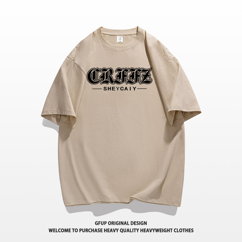 体恤 oversize圆领纯棉高级感痞帅上衣服潮流五分袖 短袖 t恤男夏季
