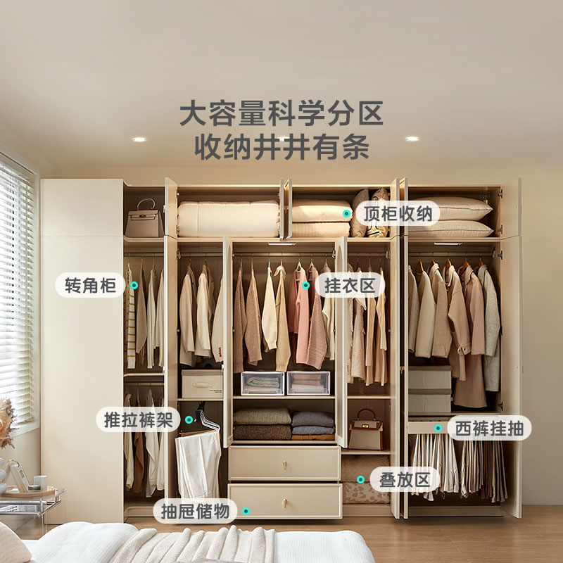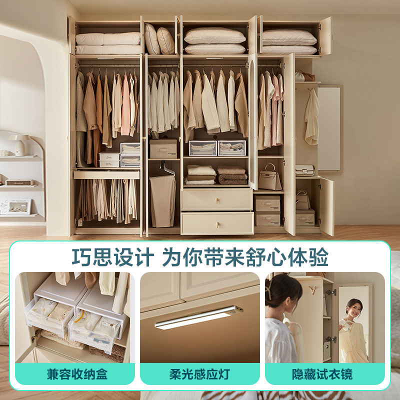奶油风家用卧室成品两门衣柜收纳柜衣橱林氏木业 法式 免定金