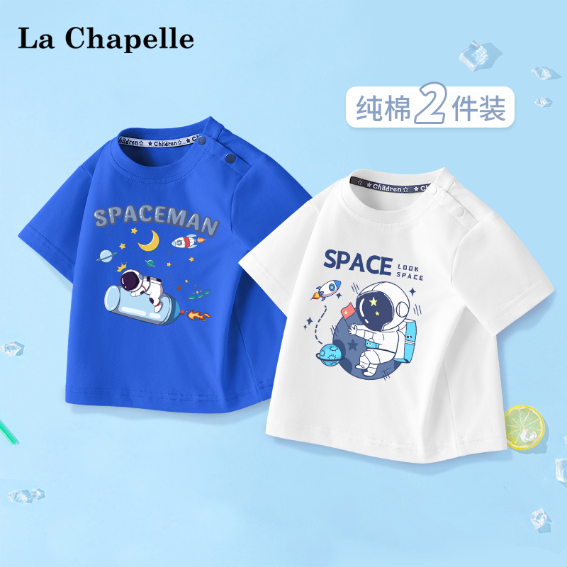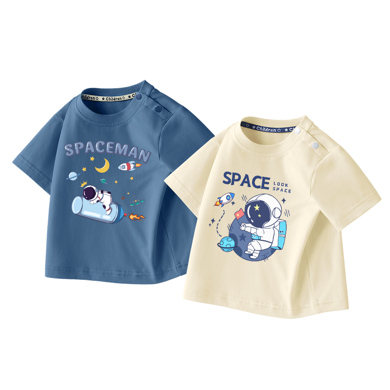 上衣 纯棉蓝色运动婴幼儿衣服男孩宇航员夏装 男童短袖 t恤2025新款