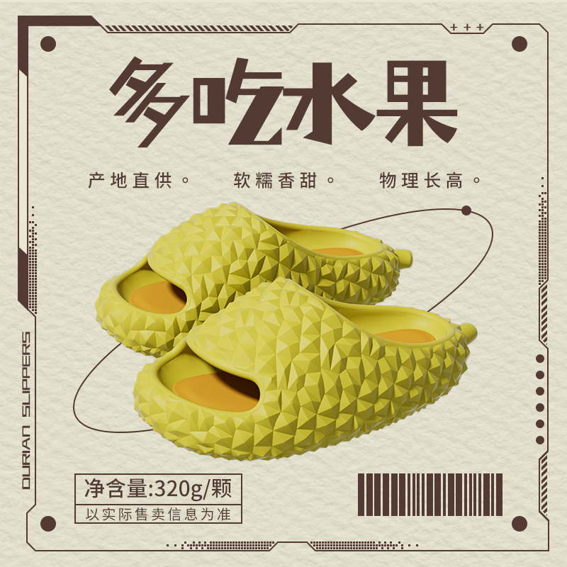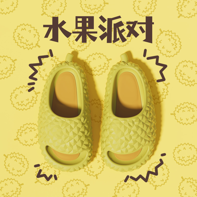 男 搞怪创意ins潮情侣室内外穿EVA软底踩屎感拖鞋 榴莲凉拖鞋 女夏季