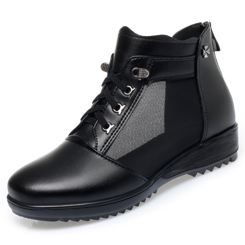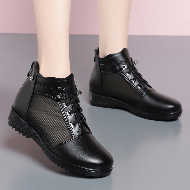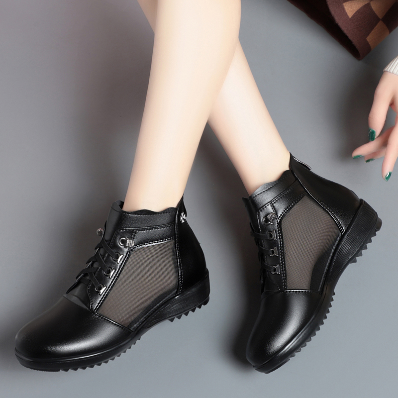 女士凉靴大码 网靴女皮鞋 真皮坡跟网面镂空网鞋 凉鞋 2025新春妈妈鞋