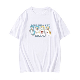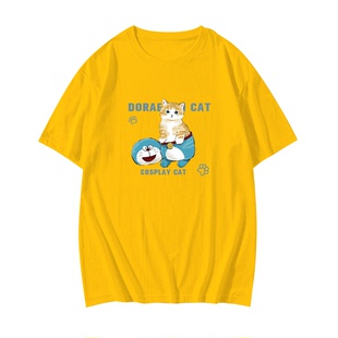 T恤衫 哆啦梦机器猫小叮当联名猫猫卡通可爱情侣男女定制半袖 短袖