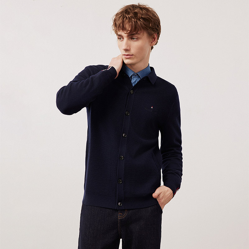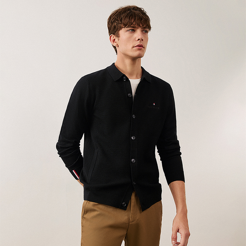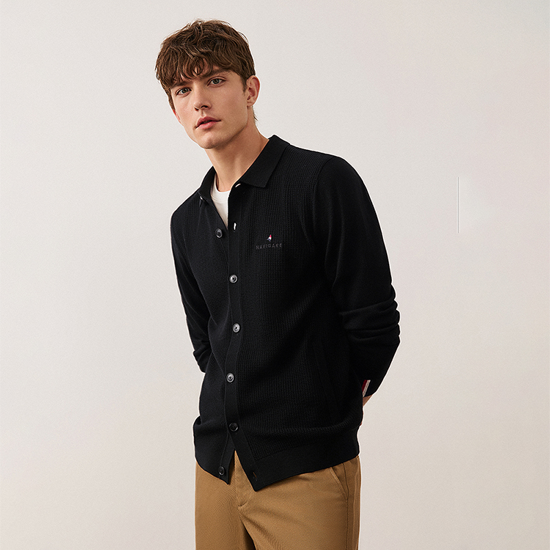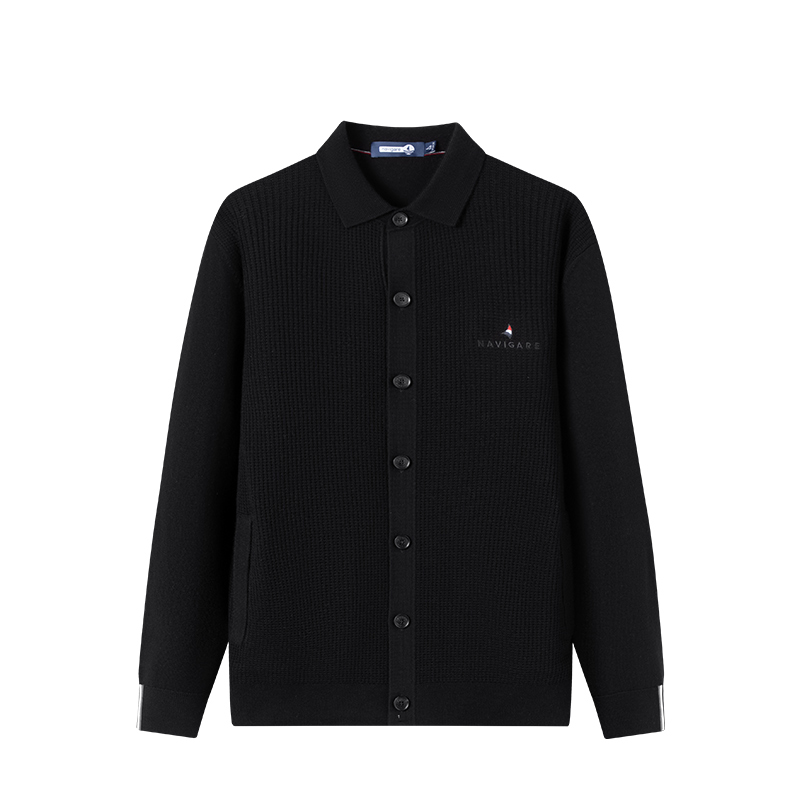 新款 Navigare意大利小帆船黑色毛衣外套男士 休闲针织开衫 纯羊毛