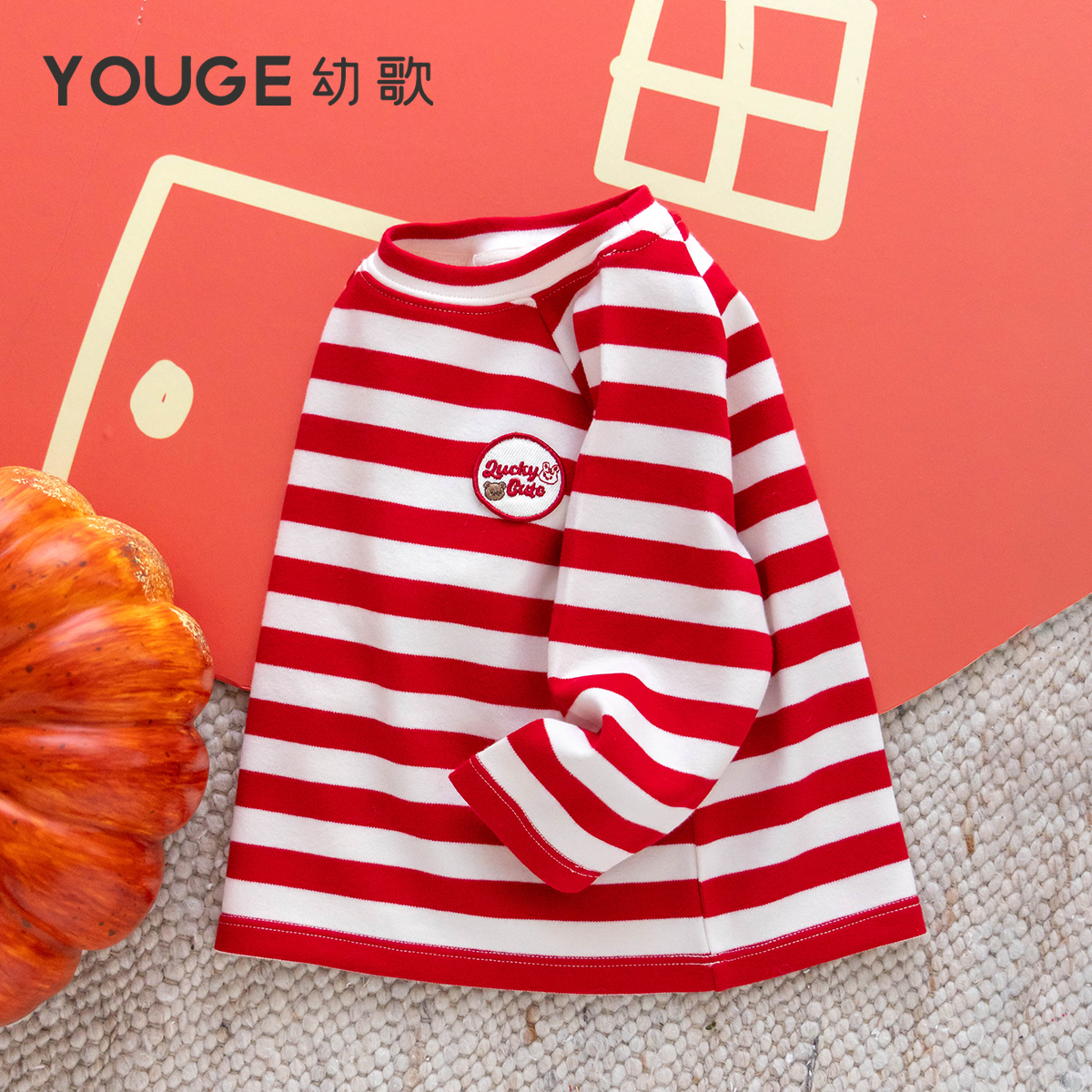 潮 绵绵亲肤长袖 YOUGE幼歌 婴幼儿撞色条纹圆领阿克苏长柔棉打底衫