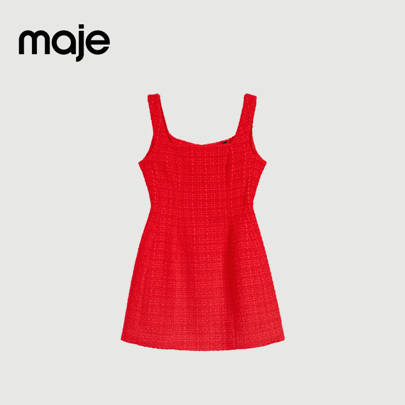 花呢红色收腰A字短款 Maje 时尚 法式 吊带连衣裙 Outlets春夏女装
