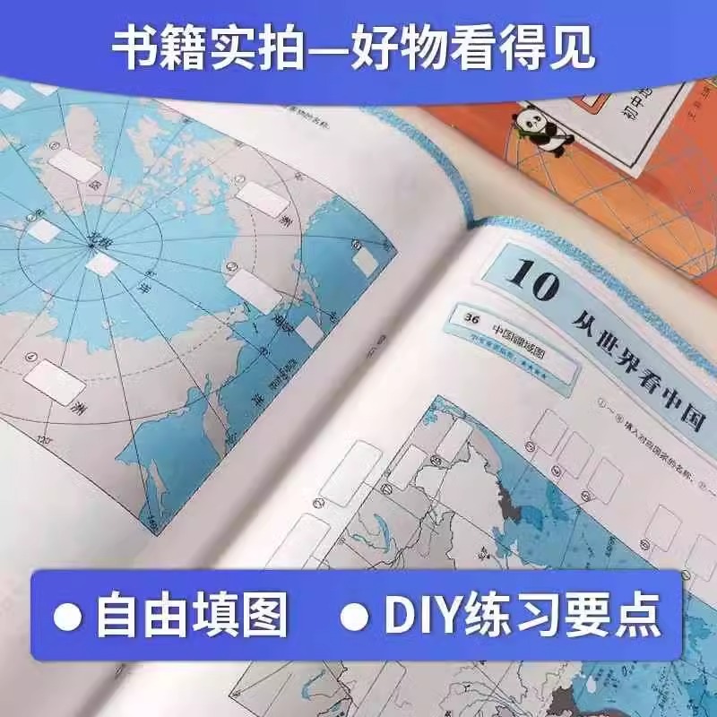 初中地理教辅资料 填图地图手账 北斗地图白地图初中地理手绘图册2024中考适用 地理学习知识大全中学地理会考试资料Z 官方正版