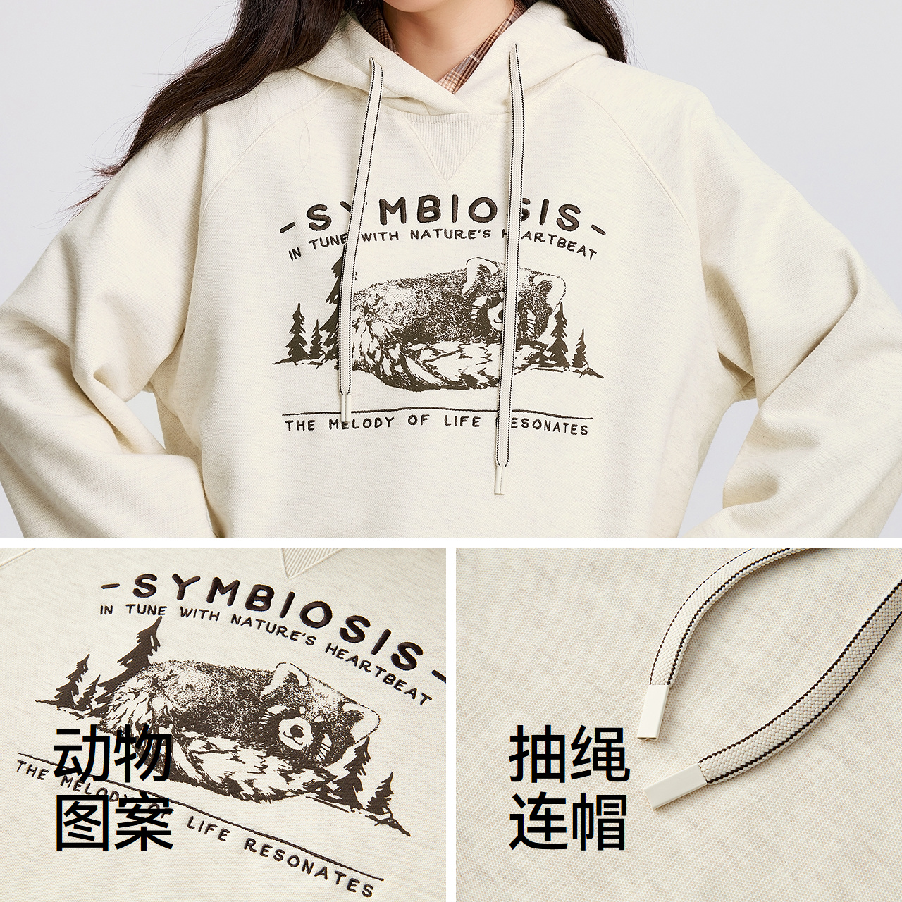 森马中国国家地理系列卫衣女冬季 加绒连帽宽松休闲上衣 图案插肩袖