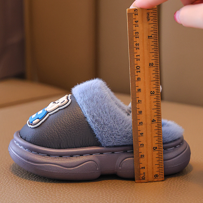 冬外穿 3岁1男童室内男宝儿童拖鞋 宝宝棉拖鞋 秋冬防水pu皮婴幼儿2