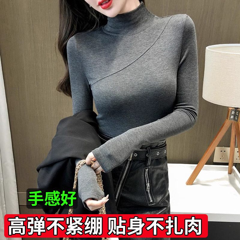 小个子圆领内搭打底衫 春秋冬薄款 显瘦短款 收腰t恤女长袖 上衣 修身