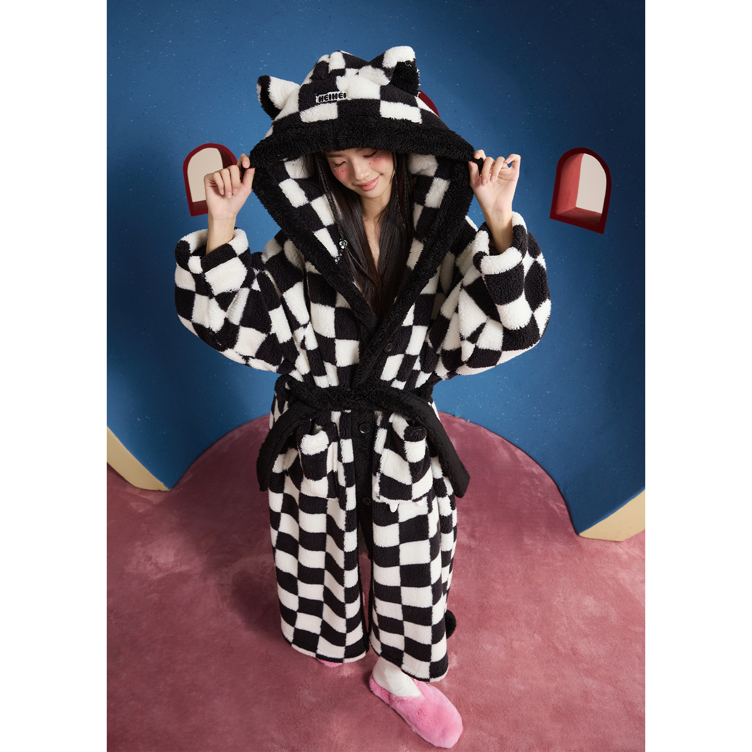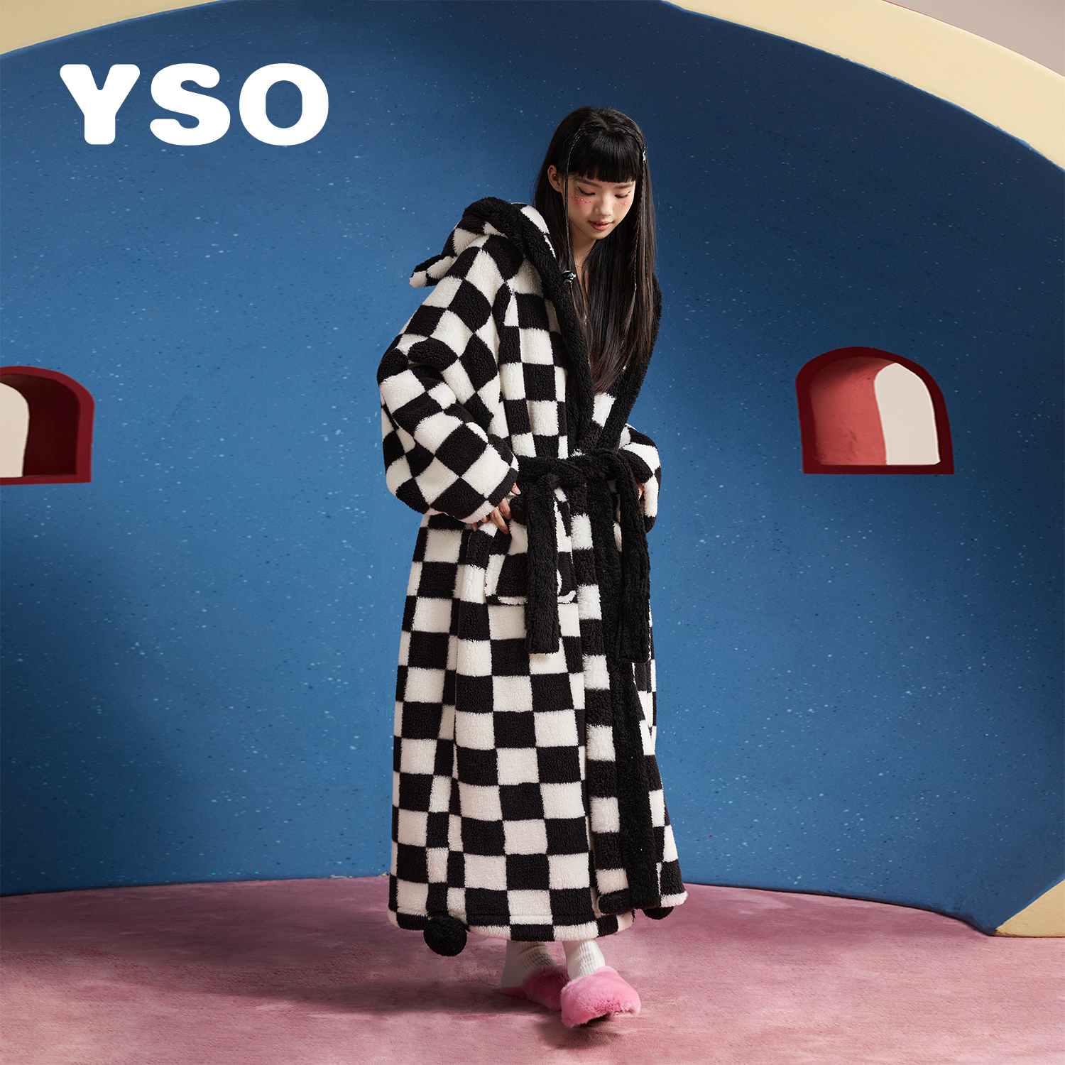大码 yso 珊瑚绒女款 睡袍女秋冬简约高级感长款 睡衣D 酷猫系列