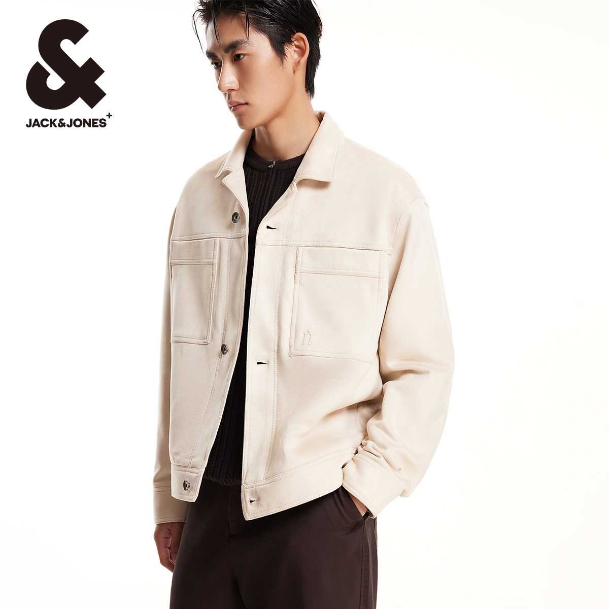 斜纹翻领工装 秋季 外套胖子宽松加肥加大肌理感夹克 男装 黑劲大码