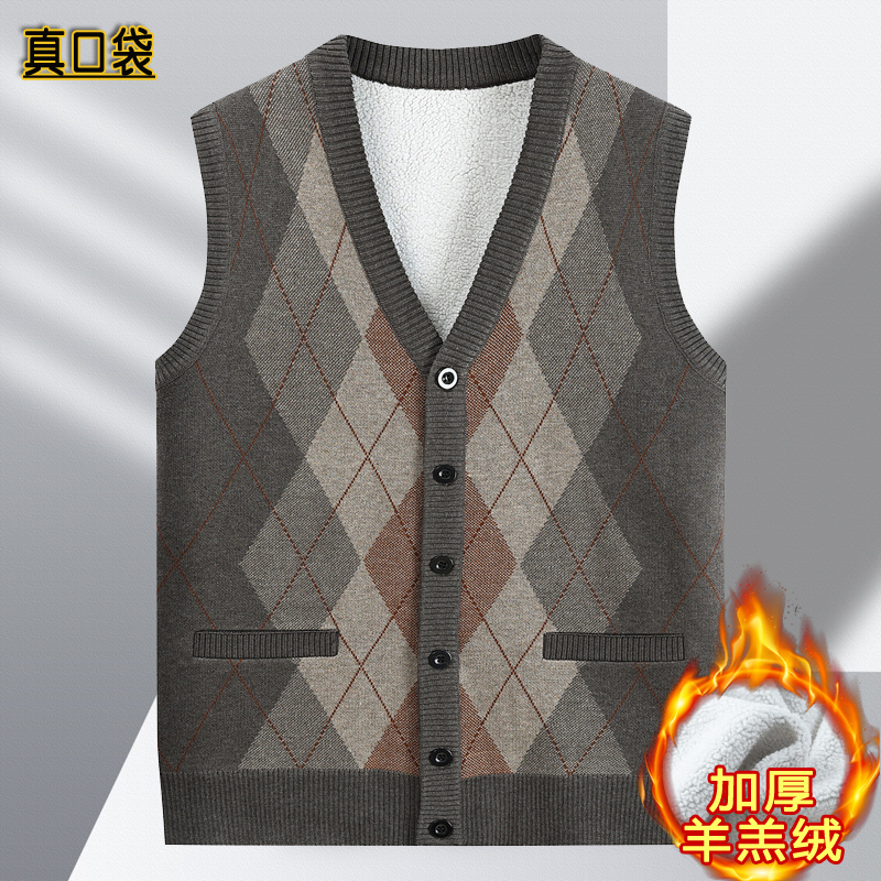 冬季 加绒加厚保暖内衣羊羔绒针织毛衣马甲中老年男背心爸爸爷爷装