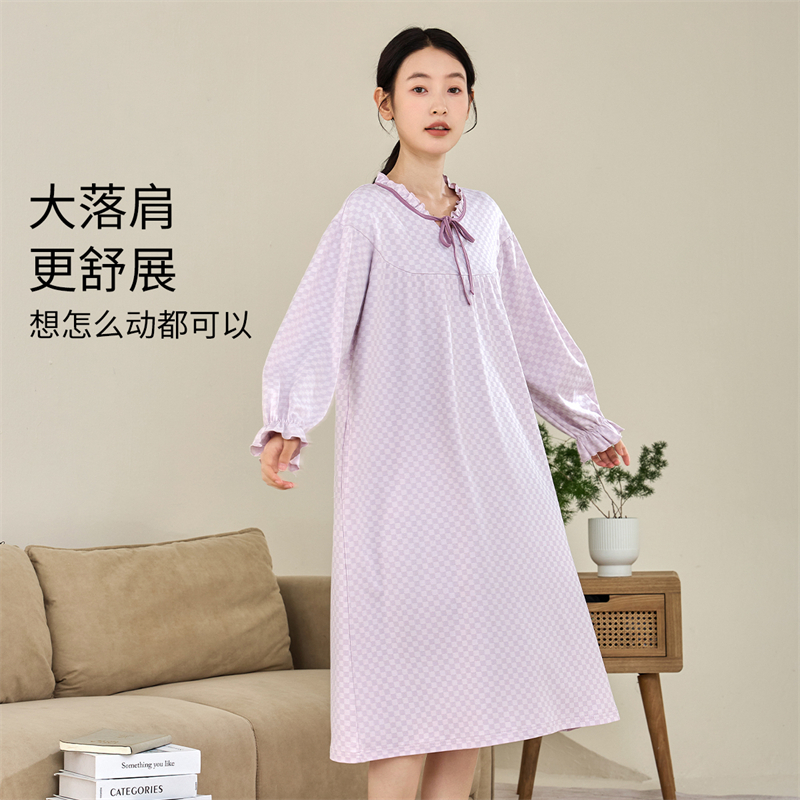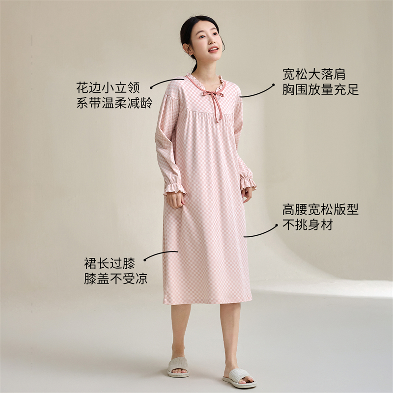 家居服 宽松孕妇紧密赛络纺睡衣裙大码 康妮雅长袖 纯棉睡裙女春秋款