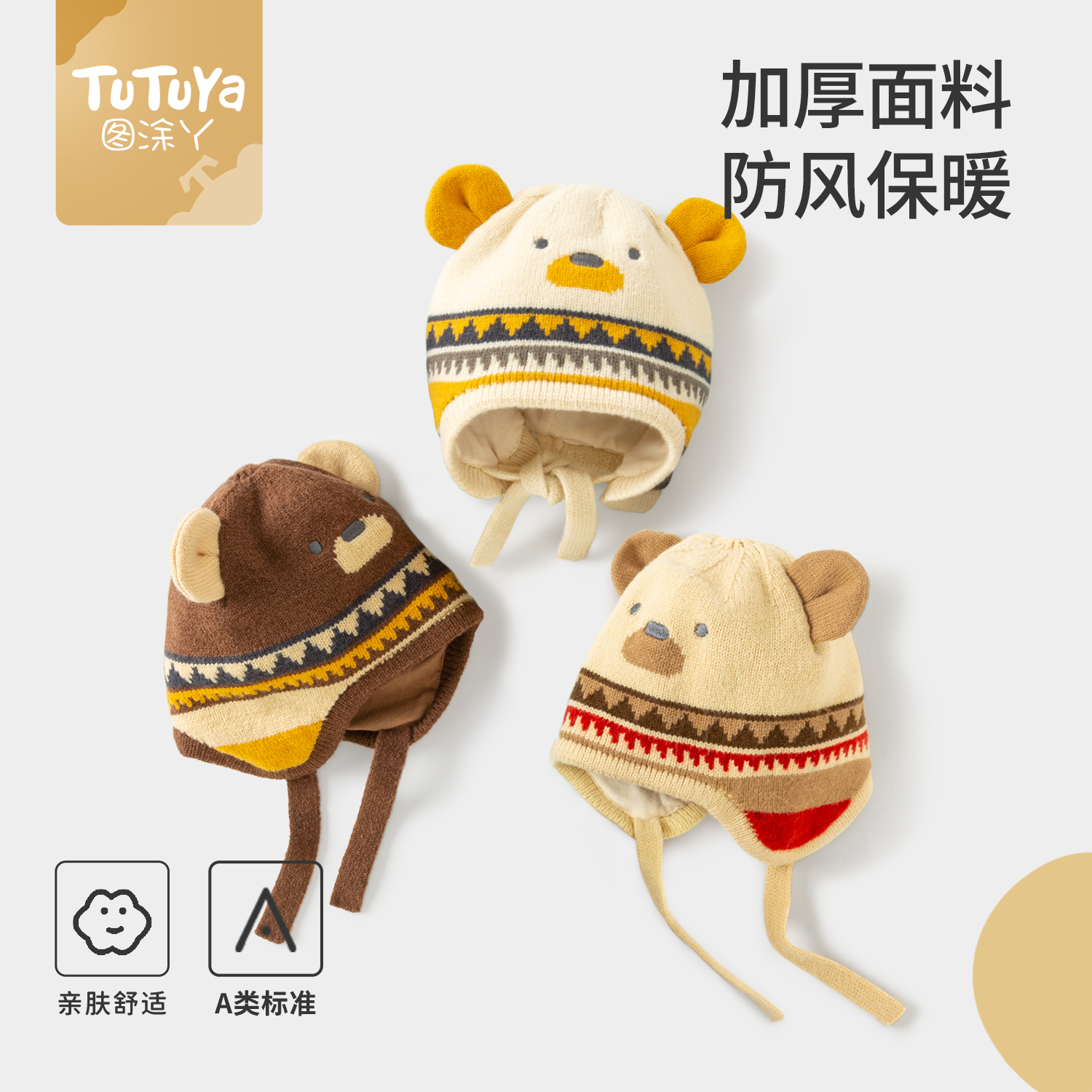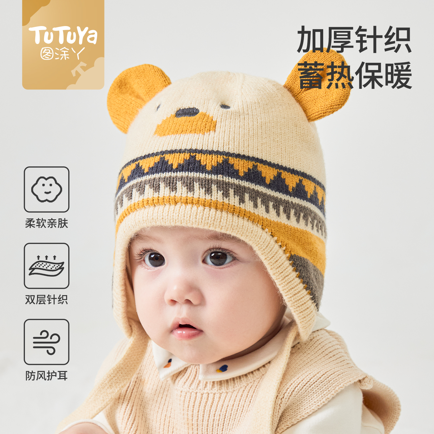 宝宝帽子秋冬季 婴儿护耳帽儿童围巾围脖一体帽男童女童户外冬防风