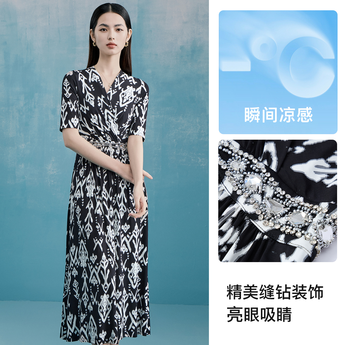 歌莉娅天丝连衣裙女秋冬2025新款 出席重要场合宴会裙子1ECC4G080