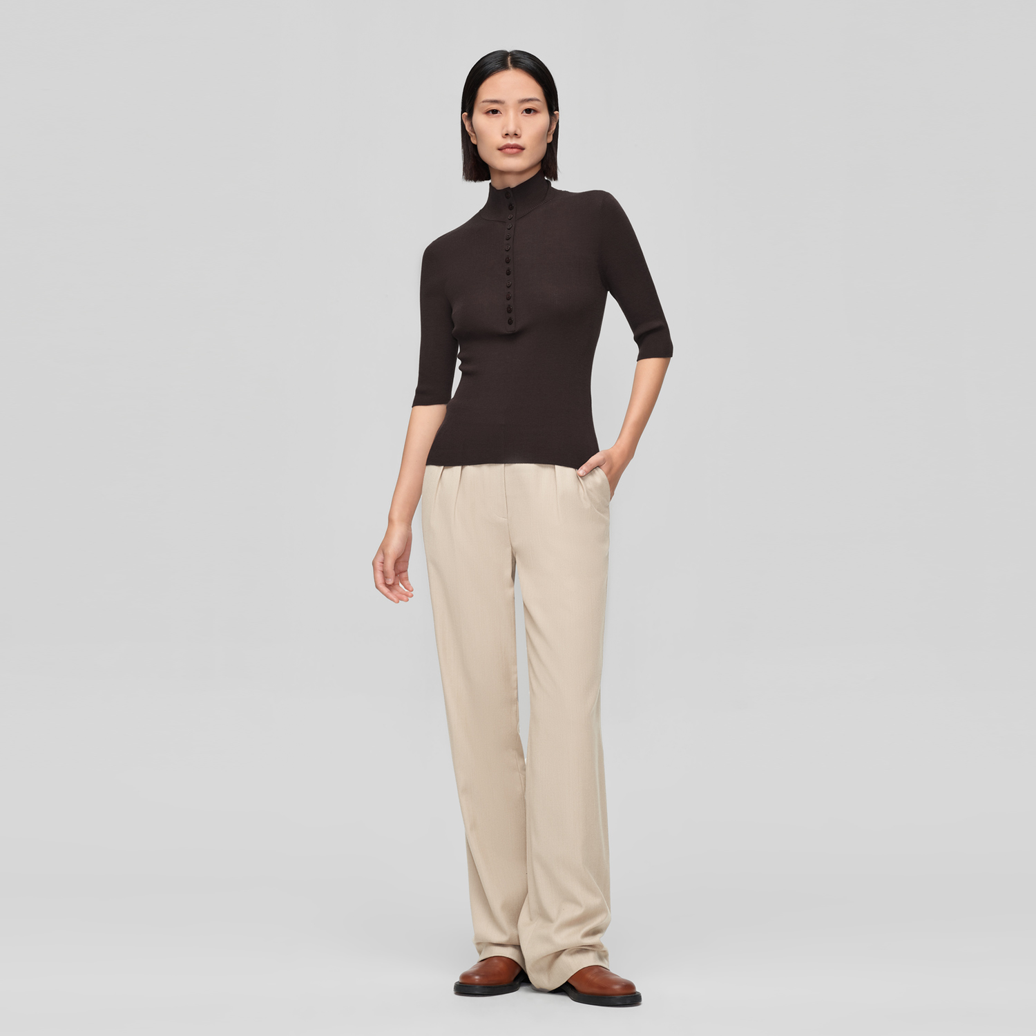 针织衫 OVVOutlet秋冬新款 内搭五分袖 丝棉高领半开襟修身 女装