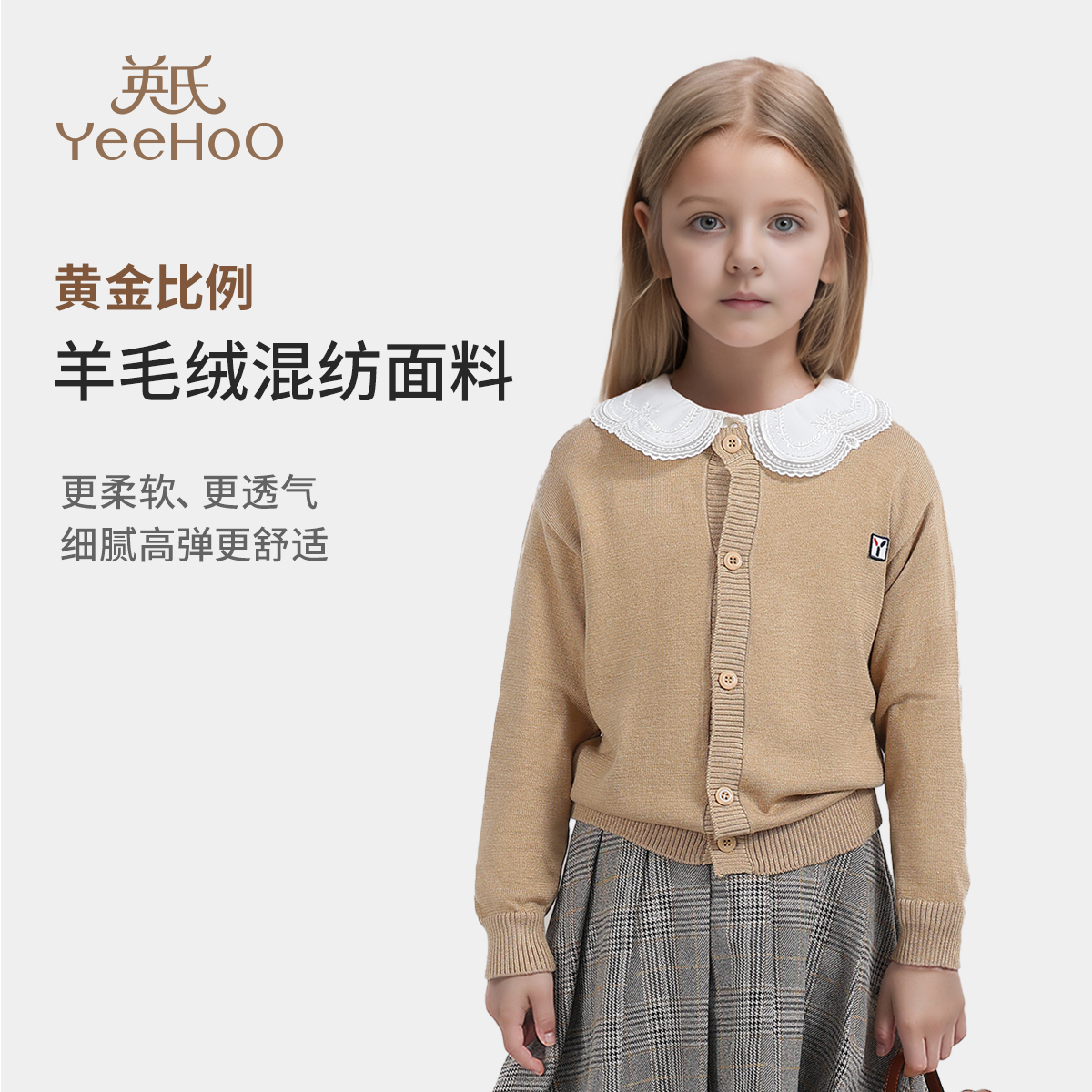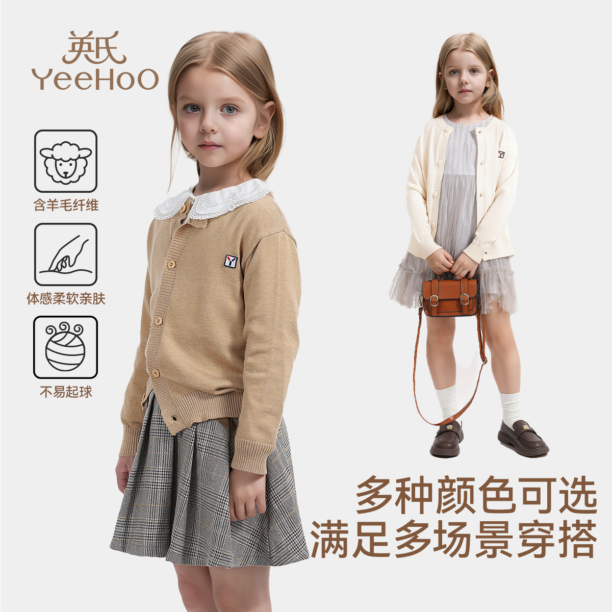 毛衣刺绣含羊毛毛衫 假两件圆领显瘦2025冬新款 女短款 森马针织开衫