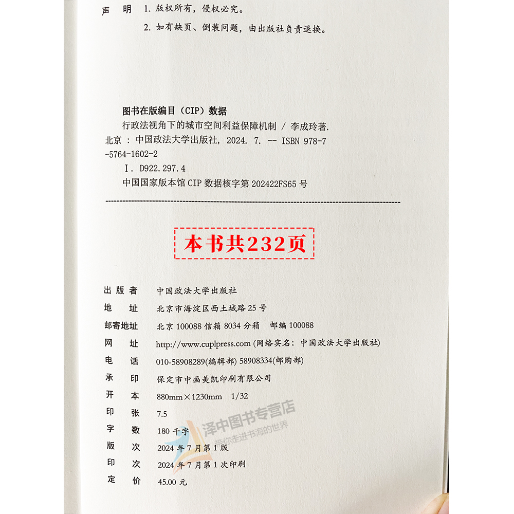 2024新书 中国政法大学出版 行政法视角下 李成玲 社9787576416022 城市空间利益保障机制 正版