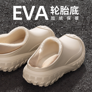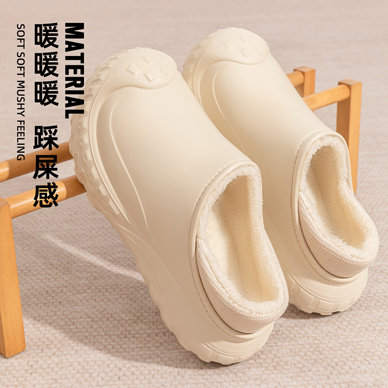 冬天加绒棉鞋 防水棉拖鞋 厚底室内家居鞋 2025新款 女士 全包跟秋冬季