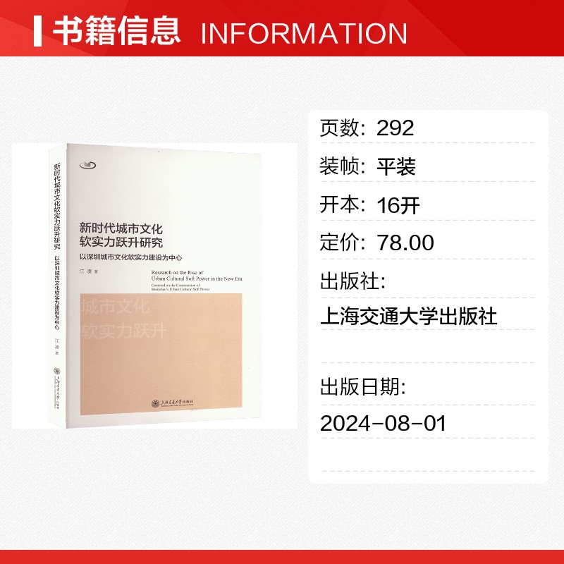 著 江凌 社会科学总论经管 励志 图书籍 新时代城市文化软实力跃升研究 新华书店正版 以深圳城市文化软实力建设为中心