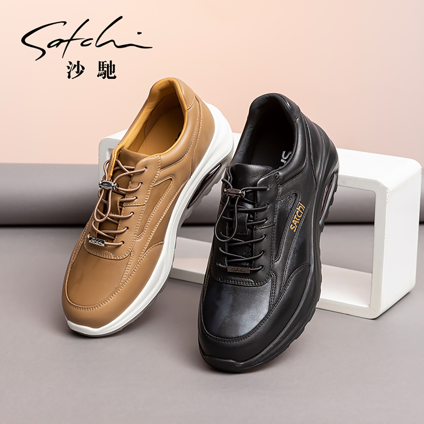 真皮牛皮时尚 运动休闲潮鞋 软皮气垫缓震 休闲鞋 沙驰男士