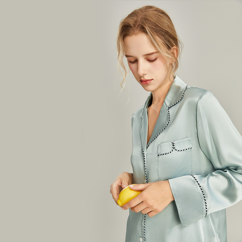 新款 100%桑蚕丝丝绸夏季 可外穿家居服 两件套装 真丝睡衣女春秋长袖