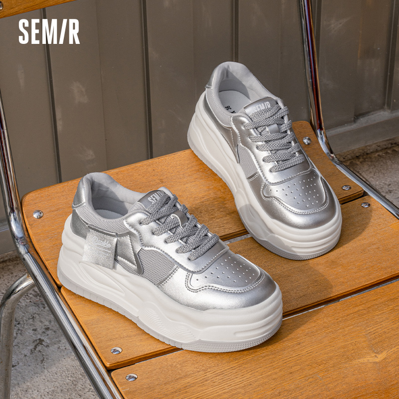 新款 2025春秋季 厚底设计感爆款 潮鞋 Semir女鞋 百搭银色单鞋 板鞋
