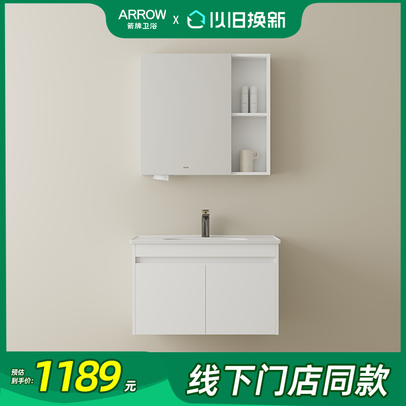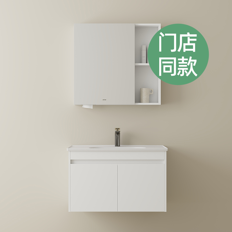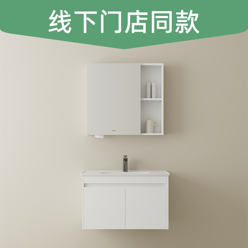 箭牌浴室柜奶油风洗手盆柜组合实木卫生间洗漱台洗手台洗脸盆柜
