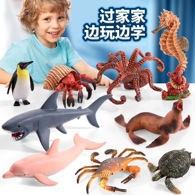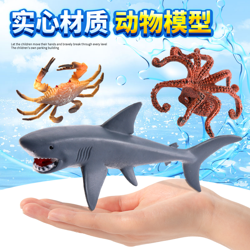 儿童仿真实心深海海洋动物生物模型鲨鱼海底世界鲸鱼套装 认知玩具