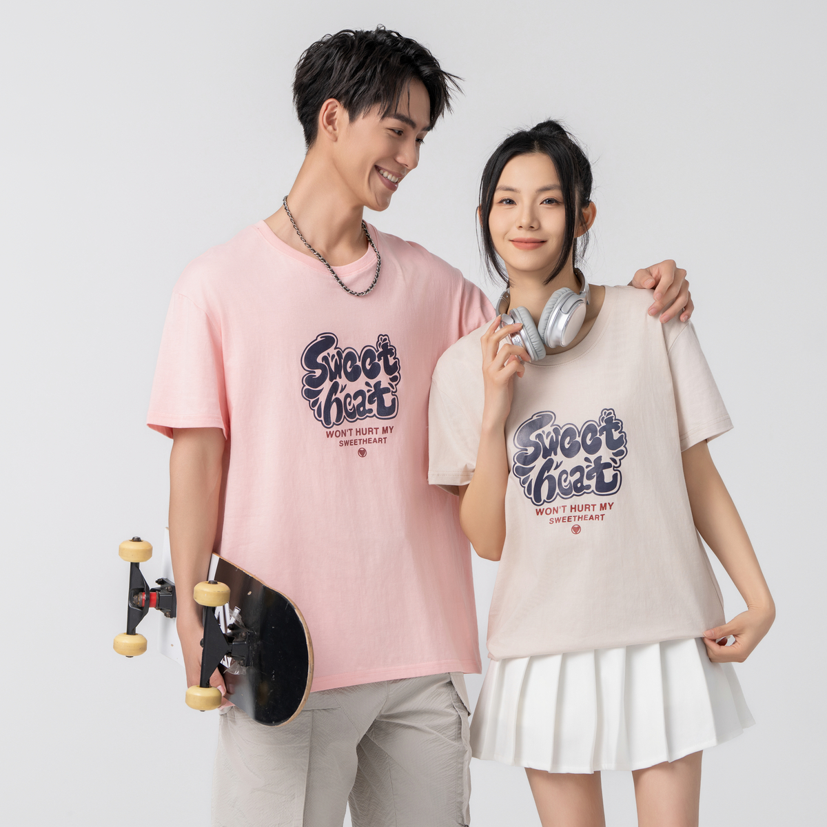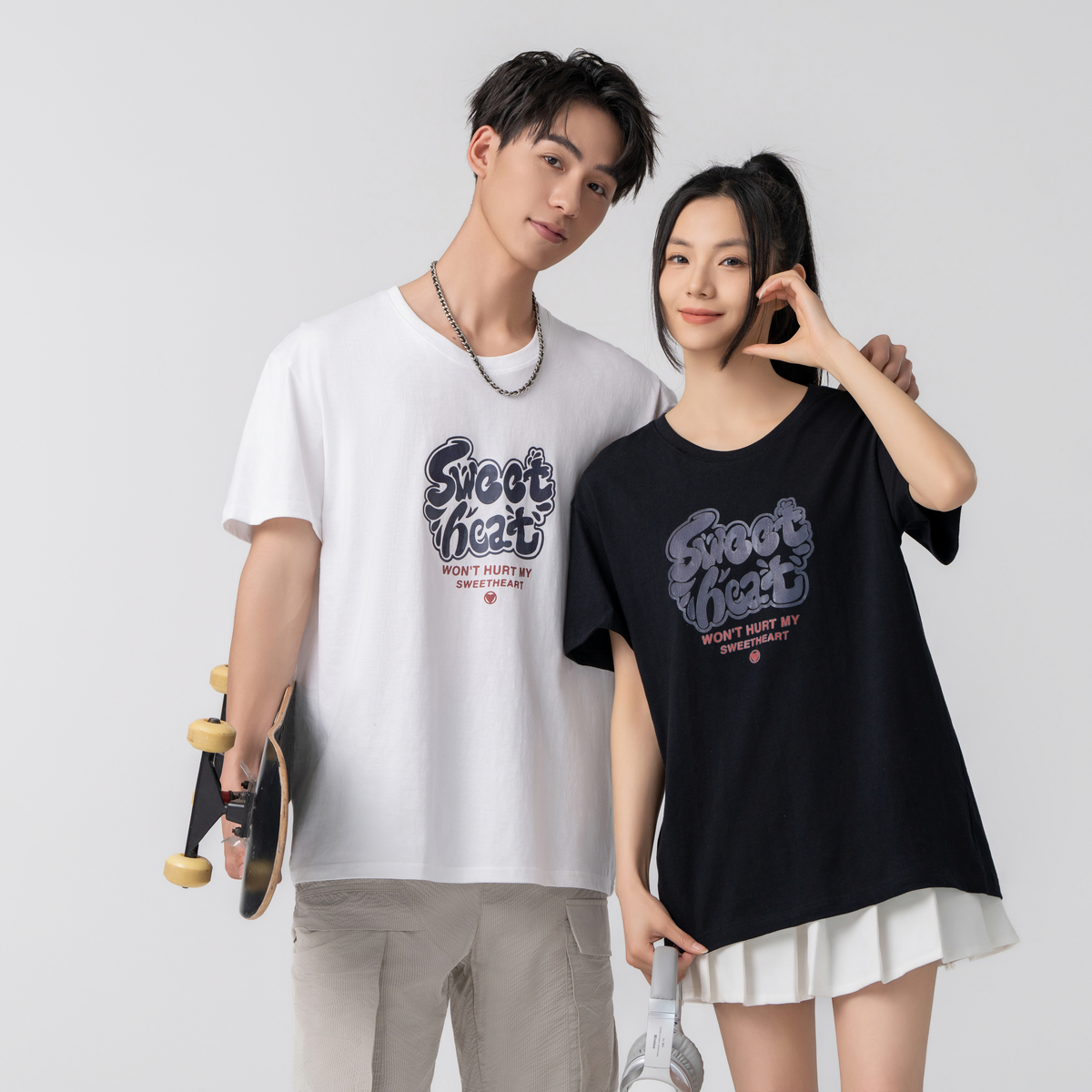 白T恤圆领字母印花简约 短袖 雪中飞2025春秋新款 100%纯棉男女同款
