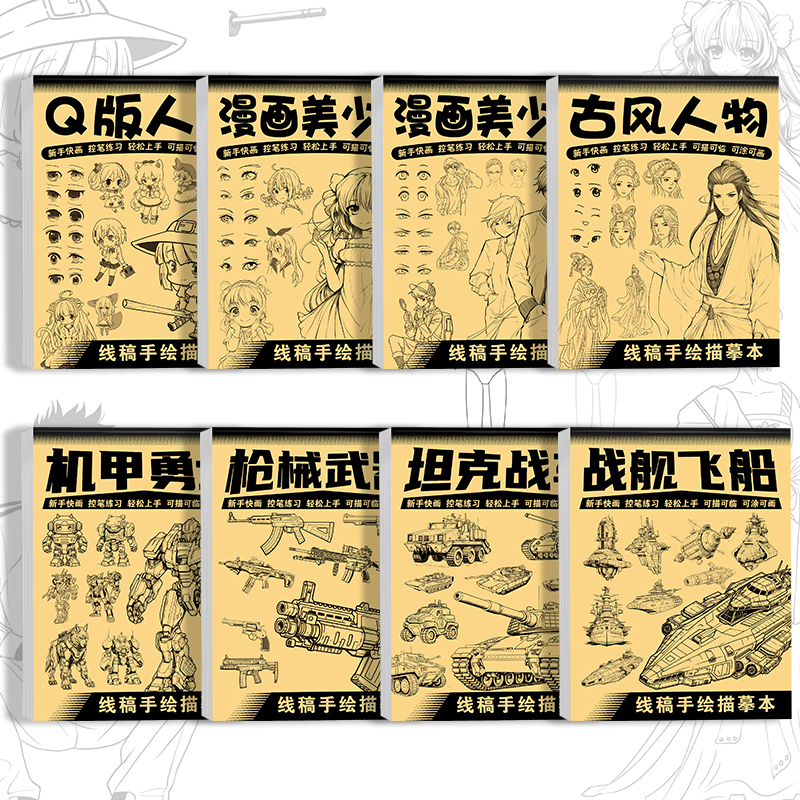 漫画入门手绘描摹本动漫人物线稿描绘线描儿童描画美少女古风人物绘画画画基础自学教程绘画素描临摹卡通画册