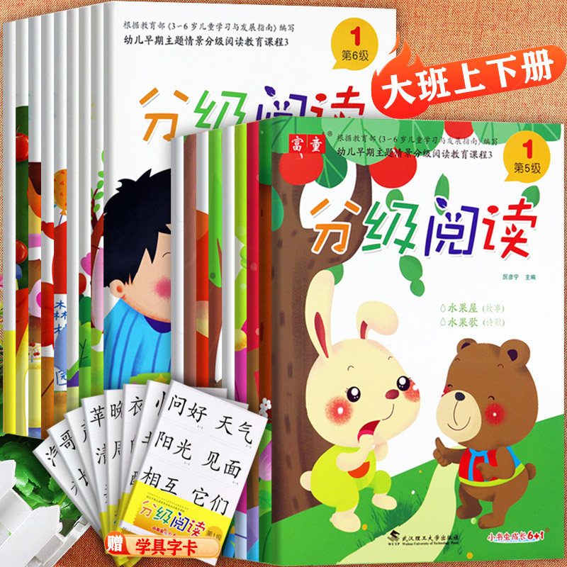 富童幼儿早期主题情景分级阅读教育课程幼儿园阅读与识字绘本分享阅读 含字卡 任选幼儿园分级阅读1 8册小中大学前班上下诗歌故事
