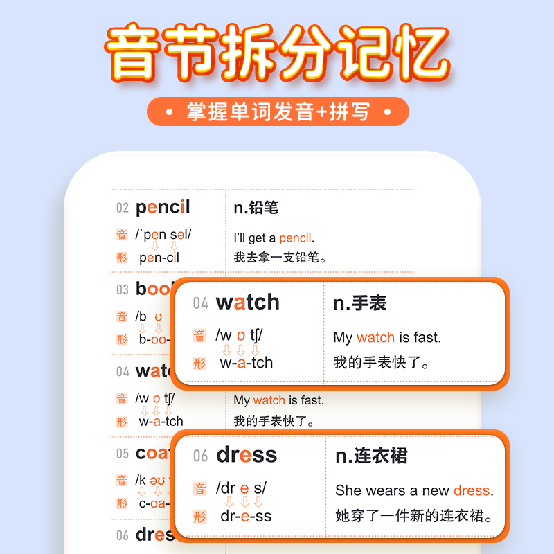 2册单词口袋书单词书短语句子速记音节拆分日常便携随时学习单词碎片时间记忆单词背诵神器手册 新概念英语1 易蓓
