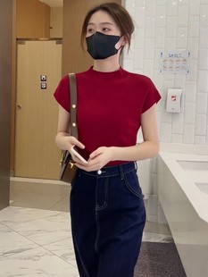 2025新款 时尚 修身 薄款 针织衫 T恤女夏季 气质半袖 外穿上衣 冰丝短袖